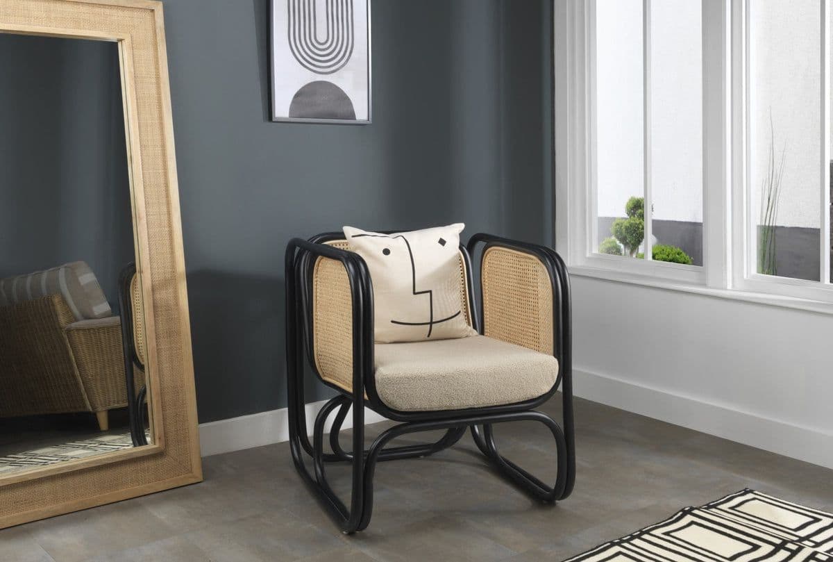The Black Indoor Rattan Chair seamlessly combines modern elegance with exceptional comfort, making it the perfect addition to any indoor space. Crafted with a sleek curved cane frame and sustainable natural rattan, this black rattan lounge chair is designed for both style and durability.